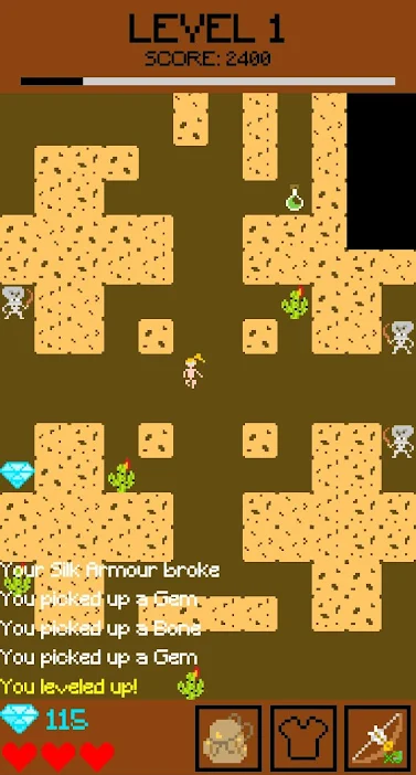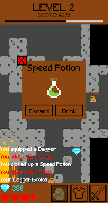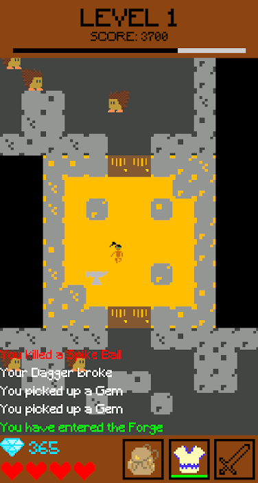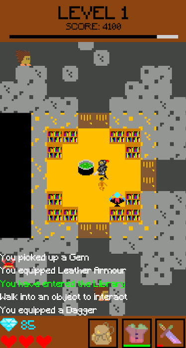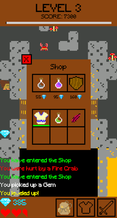 Explore an infinitely generated dungeon, collecting lavish loot and battling strange monsters. Level up to unlock new weapons and stronger creatures. Discover relaxing gardens are rare treasures. Buy exclusive items in the Dwarf's store.